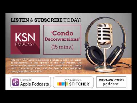 “Condo Deconversions” (15 mins.) – Attorney Kelly Elmore discusses Section 15 sales (i.e. condo deconversions) in this episode of the KSN Podcast. She examines the growing trend of condo conversions into rental units, the sales process, and the Board’s responsibilities throughout the transaction.