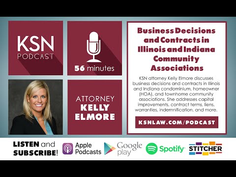 “Business Decisions and Contracts in Illinois and Indiana Community Associations” – KSN attorney Kelly Elmore discusses business decisions and contracts in Illinois and Indiana condominium, homeowner (HOA), and townhome community associations. She addresses capital improvements, contract terms, liens, warranties, indemnification, and more. (56 mins.)